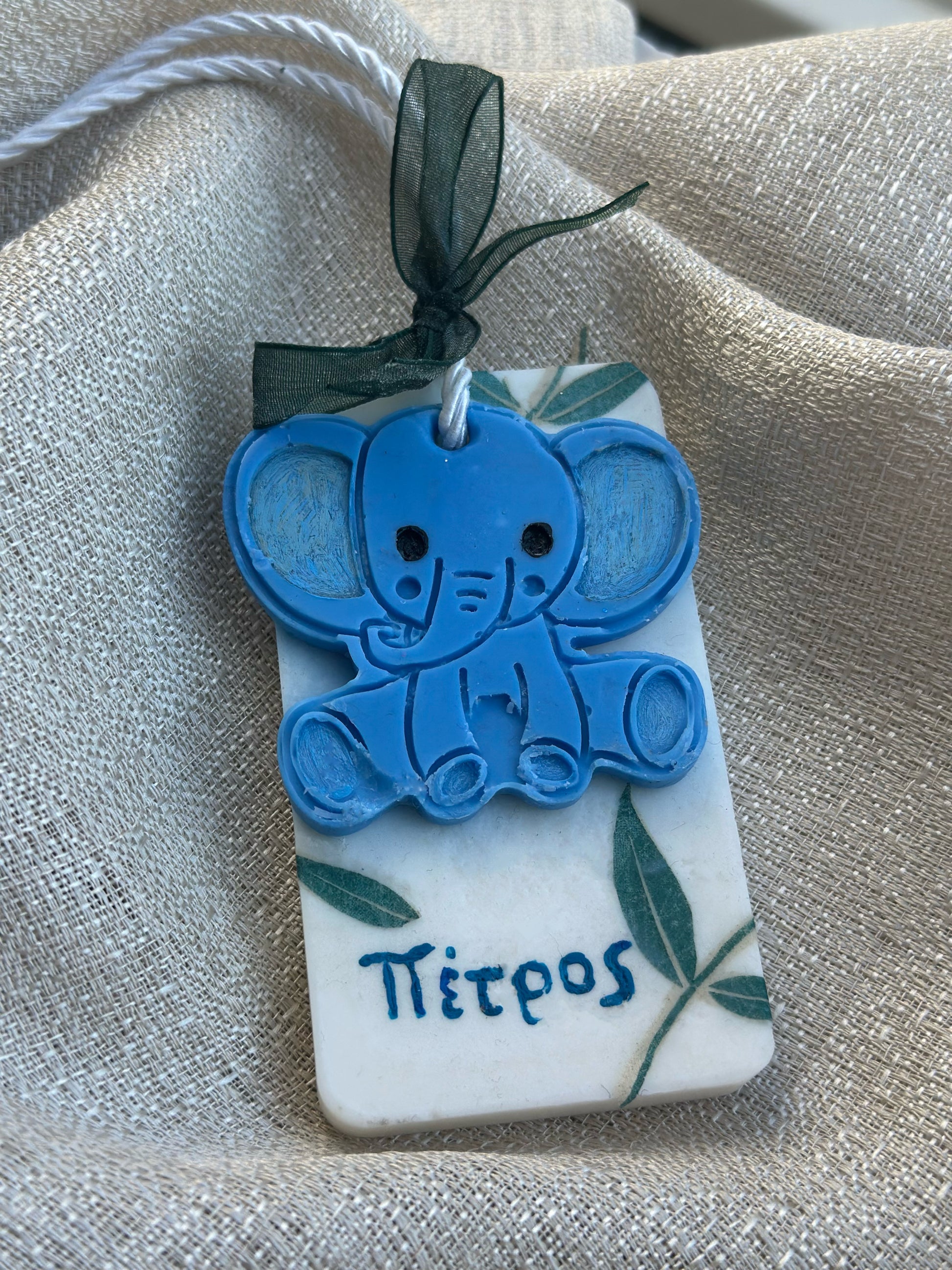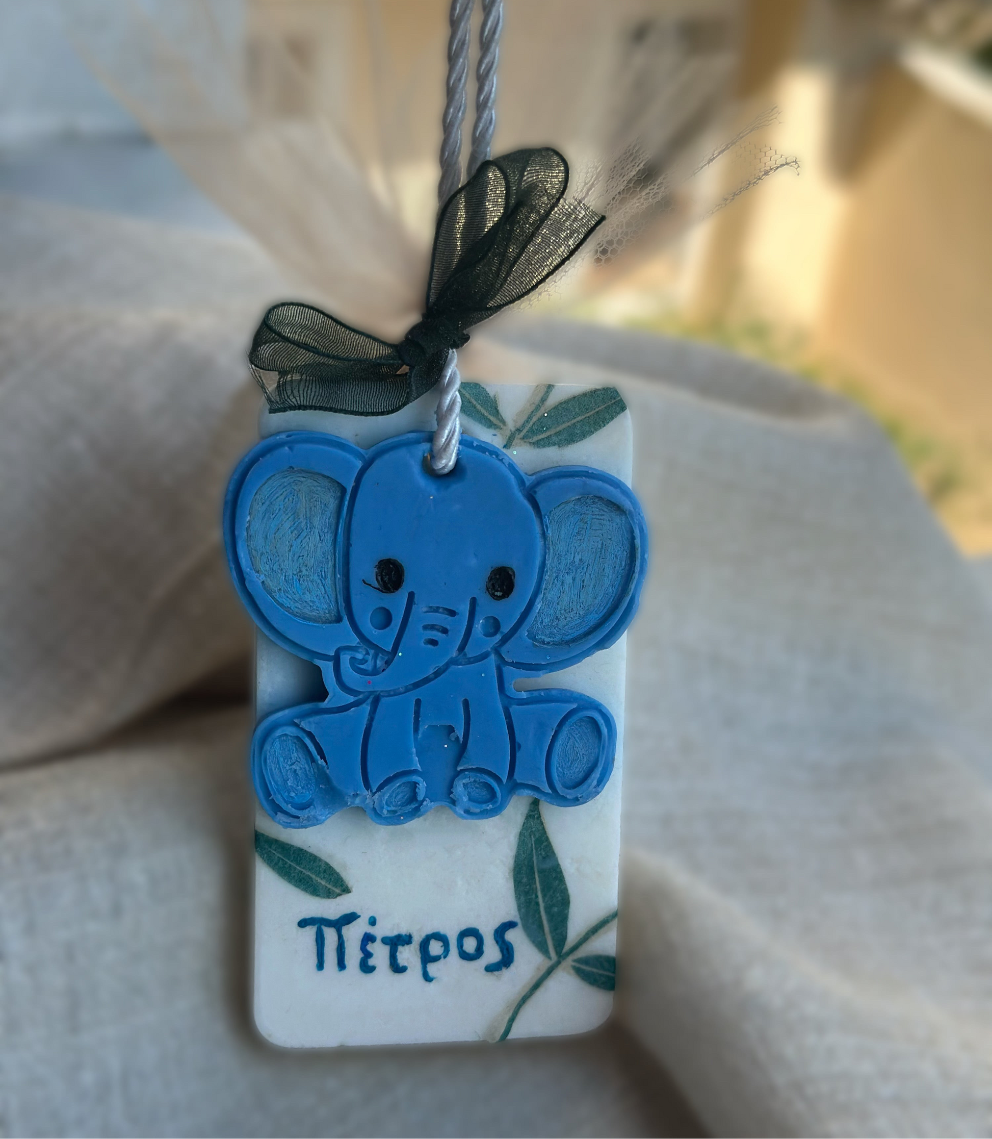 Μπομπονιέρα Βάπτισης Ελεφαντάκι - Αρωματικό κερί .